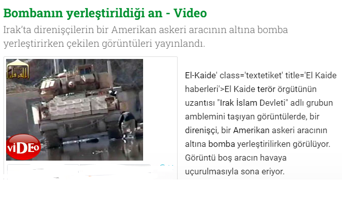 مزید سرچ کے دوران ہمیں شیبر3 نامی نیوز ویب سائٹ پر 18 مارچ 2007 کو شائع شدہ وائرل ویڈیو کے ایک فریم کے ساتھ تُرکش زبان میں ایک رپورٹ ملی۔ ترجمہ کرنے پر معلوم ہوا کہ یہ ویڈیو عراق میں امریکی ملیٹری بنکر میں بم رکھے جانے کی ہے۔ اس کے علاوہ مارچ 2007 میں شائع شدہ یہی ویڈیو ہمیں روسی ویب سائٹ پر بھی ملی۔ جس میں بھی ملیٹری ٹینک تباہ کئے جانے کی اس ویڈِیو کو عراق میں امریکی ٹینک میں بم رکھ کر تباہ کرنے کا بتایا گیا ہے۔
