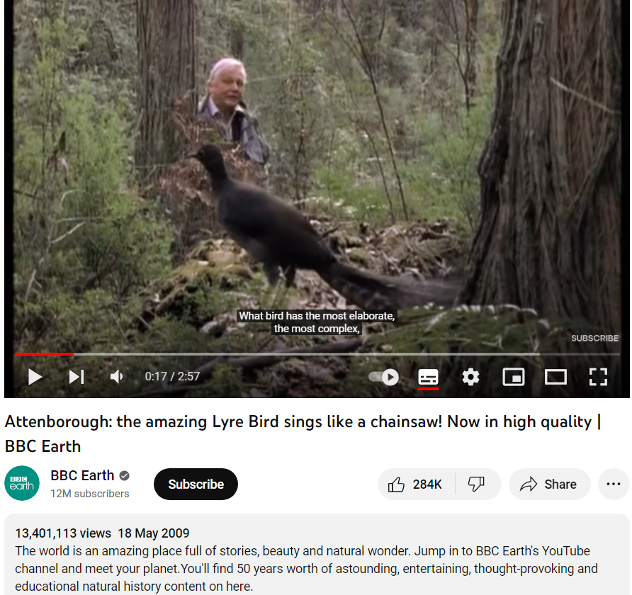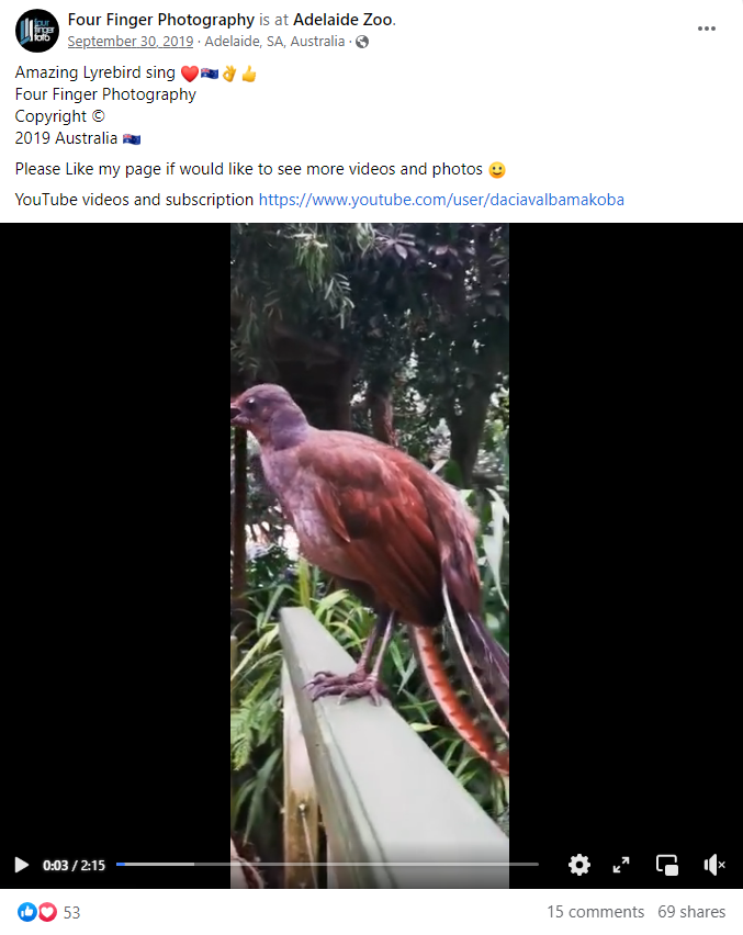 مذکورہ پرندے کی ایک ویڈیو بی بی سی ارتھ کے آفیشل یوٹیوب چینل پر 18 مئی 2019 کو بھی شائع کی گئی تھی۔ ویڈیو میں دی گئی تفصیل میں بتایا گیا ہے کہ یہ پرندہ ایک لائر برڈ ہے جو جنوبی آسٹریلیا میں پایا جاتا ہے۔
