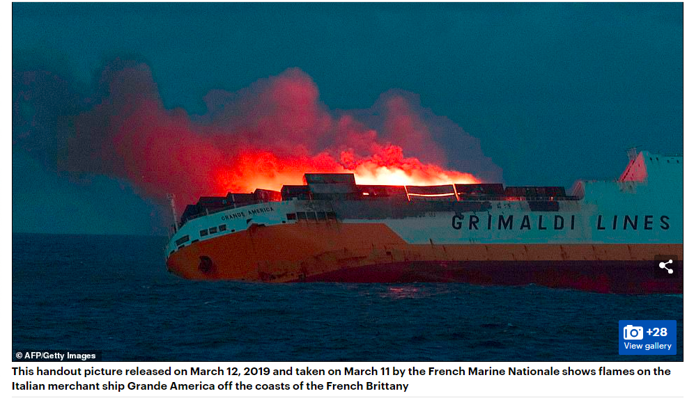 اس کے علاوہ 20 مارچ 2019 کو شائع ہونے والی برطانوی نیوز ویب سائٹ ڈیلی میل پر بھی ہمیں یہی تصویر موصول ہوئی۔ جس میں بھی اس بحری جہاز کے حوالے سے لکھا ہے کہ یہ تصویر 12 مارچ 2019 کو جاری کی گئی تھی اور اسے 11 مارچ کو فرانسیسی میرین نیشنل کی جانب سے فلمایا گیا تھا۔ جس میں فرانسیسی برٹنی کے ساحلوں سے اٹلی تجارتی بحری جہاز گرانڈے امریکہ میں لگی آگ کو دکھایا گیا تھا۔ اس کارگو شپ پر تقریباً 2000 ہزار گاڑیاں اور کنٹینر موجود تھے۔ حالانکہ اس جہاز پر موجود 27 کارکنان کی جان بحفاظت بچا لی گئی تھی۔