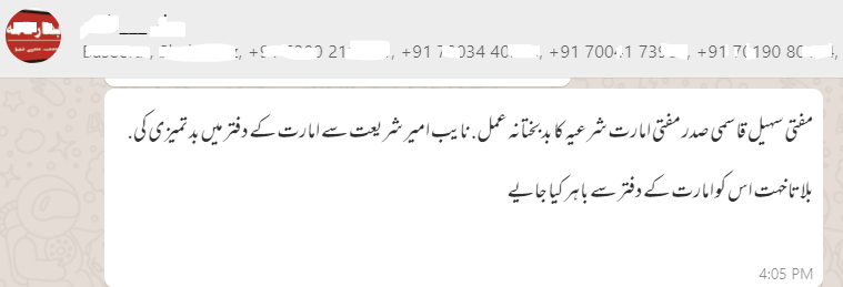 کیا امارت شرعیہ کے صدر مفتی سہیل احمد قاسمی کو امارت کے کارکنان نے دی جان سے مارنے کی دھمکی؟