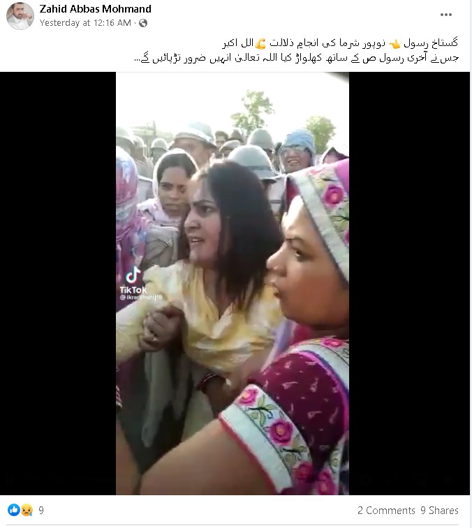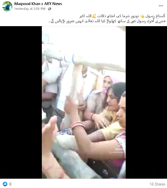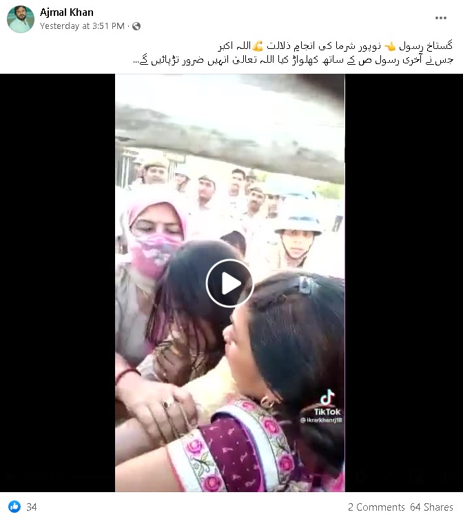 وائرل ویڈیو میں افراتفری کے درمیان ایک پریشان حال خاتون نظر آ رہی ہے، جس کے ارد گرد پولس اہلکار دیکھے جا سکتے ہیں۔ کچھ خاتون پولس اہلکار اسے جبراً پکڑے ہوئے نظر آ رہی ہیں۔ ویڈیو سے متعلق دعویٰ کیا جا رہا ہے کہ بالآخر مفرور نوپور شرما کو گرفتار کر لیا گیا۔ یہ ویڈیو فیس بک، واہٹس ایپ اور ٹویٹر پر کافی وائرل ہے۔