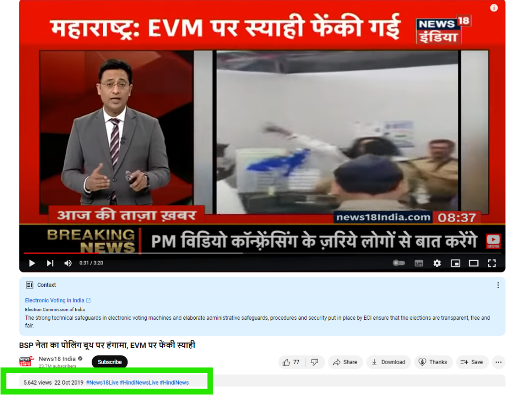 نیوز 18 انڈیا کی 22 اکتوبر 2019 کی بھی ایک رپورٹ میں اس ویڈیو کو دکھایا گیا ہے اور تھانے کے پولنگ بوتھ پر ہوئے اس واقعے سے متعلق تفصیلی معلومات فراہم کی گئی ہے۔