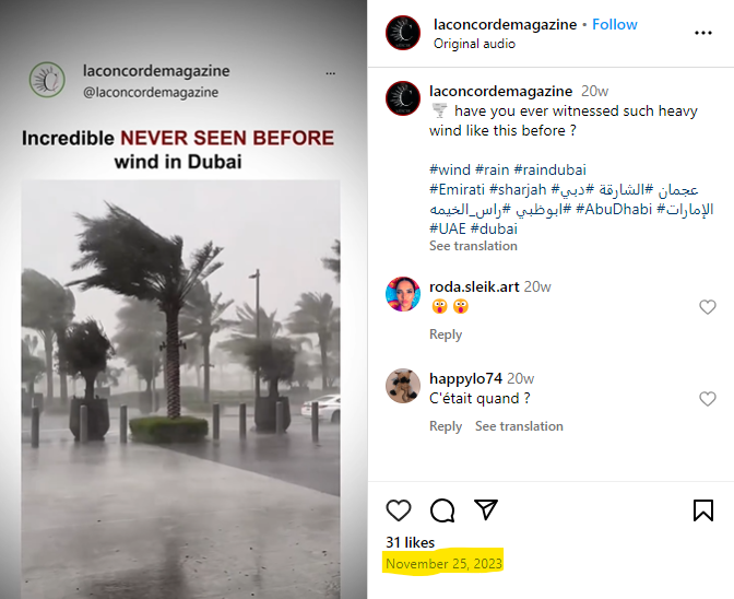 فریم 5: ویڈیو کے پانچویں فریم کو سرچ کرنے پر ہمیں اس سے ملتی جلتی ہوبہو ویڈیو انسٹاگرام پر 25 نومبر 2023 کو شیئر شدہ ملی، جسے دبئی کا بتایا گیا ہے۔