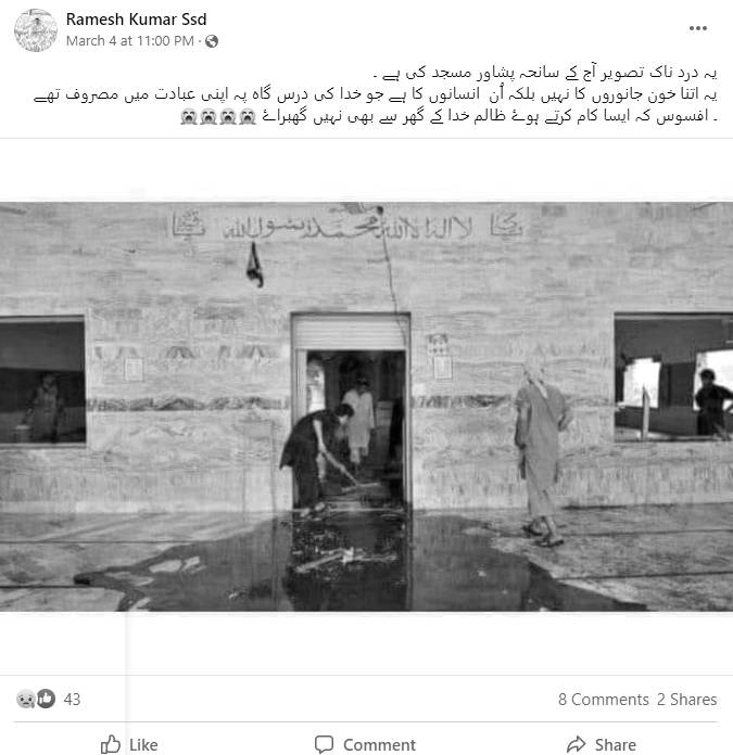 پشاور کی شیعہ مسجد میں ہوئے دھماکے سے جوڑ کر پرانی تصویر وائرل