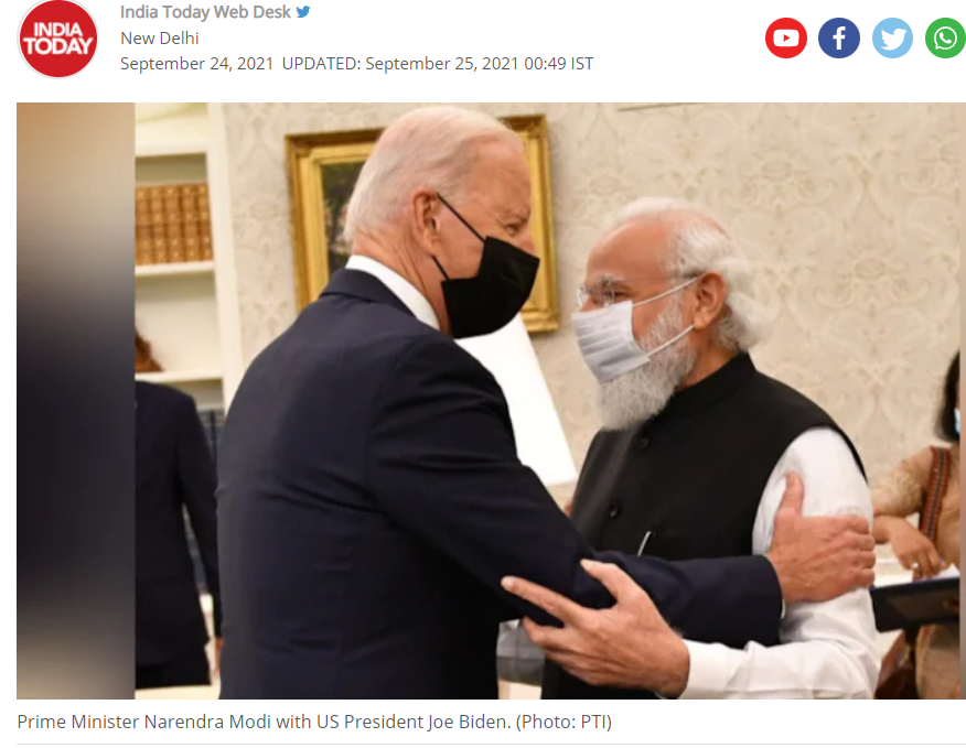 بھارت کے وزیر اعظم نریندر مودی کے امریکہ دورے کے بعد پڑوسی ملک پاکستان میں اثر دیکھنے کو ملا۔ گزشتہ دنوں پاکستان کے وزیر اعظم نے اقوام متحدہ کی جنرل اسمبلی میں خطاب کیا تھا۔ انہوں نے بھارتی وزیر اعظم کو تنقید کا نشانہ بنایا۔ جس کے بعد پاک پی ایم عمران خان کی امریکی صدر جوبائیڈن کے ساتھ ایک تصویر سوشل نیٹورکنگ سائٹ پر گردش کرنے لگی۔