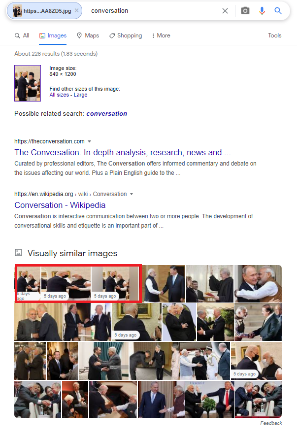 امریکی صدر کے ساتھ پاکستانی وزیر اعظم کی وائرل تصویر کی سچائی جاننے کے لئے ہم نے اپنی ابتدائی تحقیقات کا آغاز کیا۔ سب سے پہلے ہم نے تصویر کو ریورس امیج سرچ کیا۔ جہاں ہمیں اسکرین پر کئی خبریں ملیں۔ جس میں صدر جوبائیڈن کی تصویر کے ساتھ بھارتی وزیر اعظم نریندر مودی نظر آرہے ہیں۔