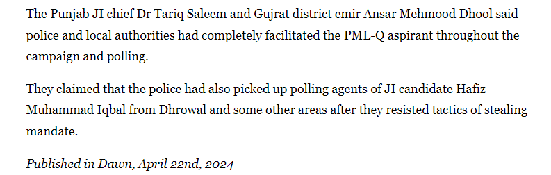 اس کے علاوہ ہم نے ایک کیفریم کے ساتھ “گجرات، بائی پول، اسنیچ” کیورڈ سرچ کیا۔ جہاں ہمیں پاکستان کی معروف نیوز ویب سائٹ ڈان نیوز پر ہوبہو کیفریم کے ساتھ رواں ماہ کی 22 تاریخ کو شائع ایک رپورٹ موصول ہوئی۔ جس کے مطابق پاکستان کی اپوزیشن جماعت پی ٹی آئی اتحاد اور سنی اتحاد کونسل نے گجرات پی پی 32 اور وزیر آباد پی پی 36 میں ضمنی انتخابات کے دوران مبینہ طور پر بڑے پیمانے پر دھاندلی کا الزام لگایا تھا۔