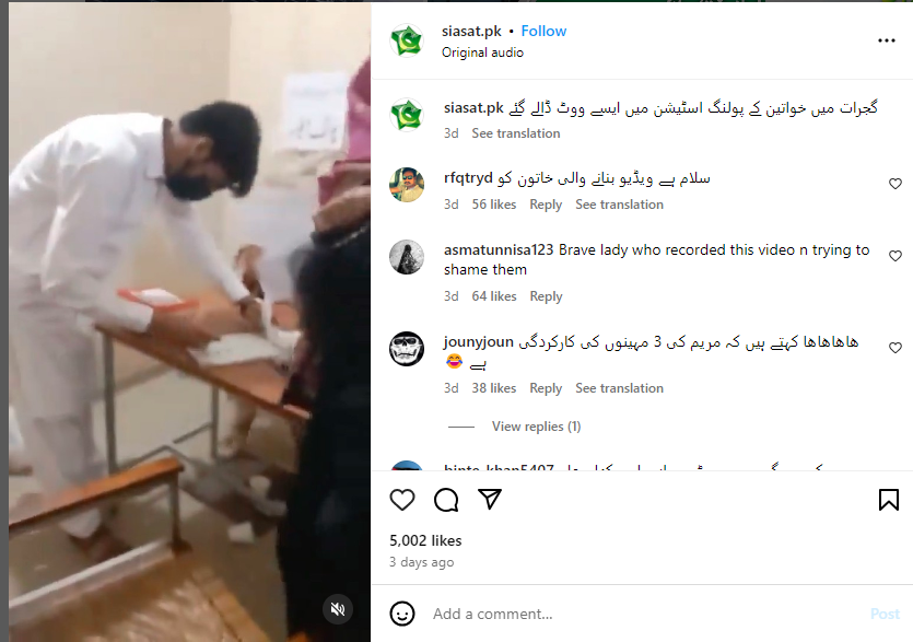 پاکستان کی سیاست ٹی وی نے بھی اس ویڈیو کو اپنے انسٹاگرام پر پاکستان کے گجرات کا بتاکر شیئر کیا ہے۔