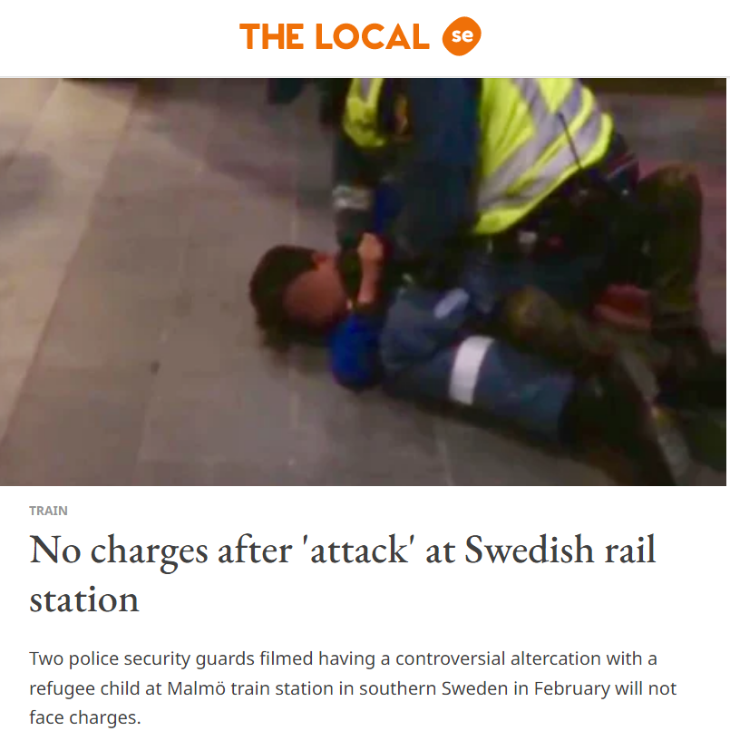 دی اوبزرورس پر اس معاملے سے متعلق شائع رپورٹ میں بتایا گیا ہے کہ 6 فروری 2015 کو سویڈین کے مالمو ریلوے اسٹیشن پر 2 نجی سکیورٹی گارڈز نے ایک 9 سالہ اور ایک 12 سالہ لڑکوں کو بغیر ٹکٹ سفر کرنے کی وجہ سے پکڑا تھا۔ اسی واقعے کی ویڈیو ہے جس میں 9 سالہ لڑکے پر سکیورٹی گارڈ کی جانب سے تشدد ہوتا ہوا دیکھا جا سکتا ہے۔ جبکہ اس لڑکے کو کلمہ پڑھتے ہوئے بھی سنا جاسکتا ہے۔