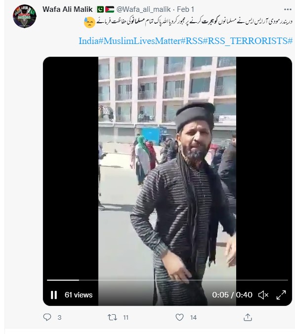 سوشل میڈیا پر 36 سیکینڈ کے ایک ویڈیو کے ساتھ دعویٰ کیا جا رہا ہے کہ گجرات کے پیرانہ کے مسلمانوں کو مودی اور آر ایس ایس نے ہجرت کرنے پر مجبور کردیا ہے۔