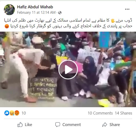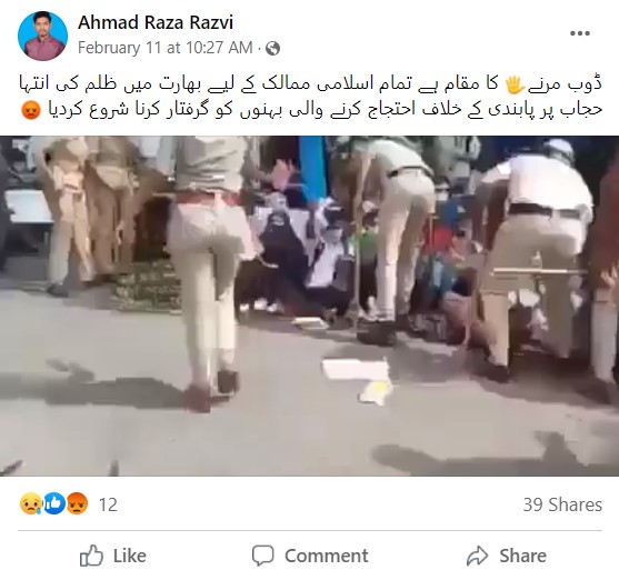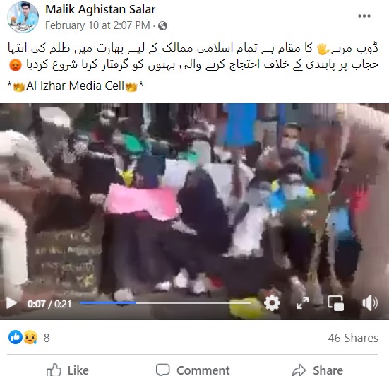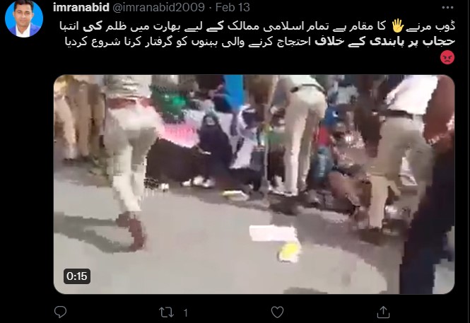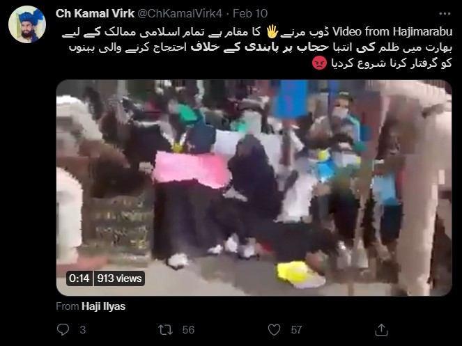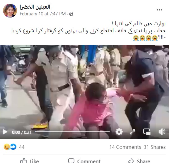 سوشل میڈیا پر 21 سیکینڈ کے ایک ویڈیو کے ساتھ دعویٰ کیا جا رہا ہے کہ بھارت میں حجاب پر پابندی کے خلاف احتجاج کر رہی مسلم خواتین کو گرفتار کیا جا رہا ہے۔