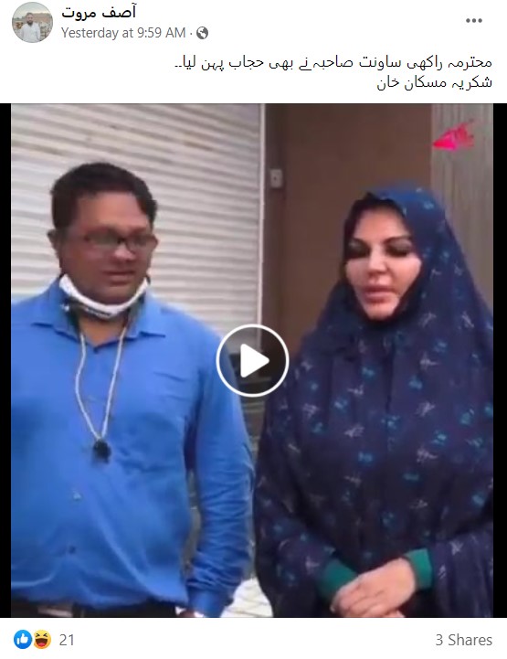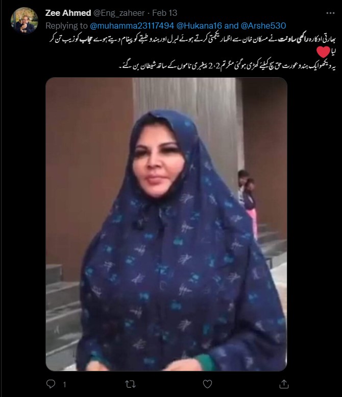 اداکارہ راکھی ساونت کی حجاب والی تصویر کو دیگر ٹویٹر و فیس بک صارفین نے بھی شیئر کیا ہے۔