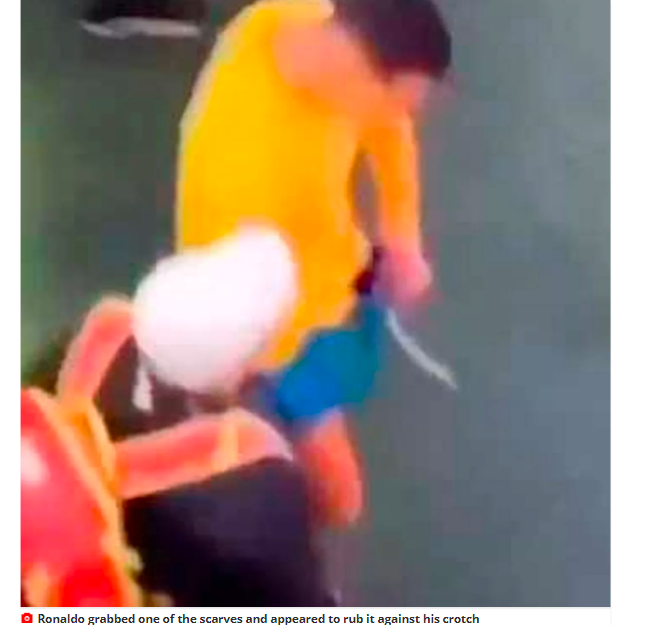 ویڈیو کے ساتھ کیا گیا دعویٰ فرضی ہے، دراصل فٹبالر رونالڈو نے الہلال کے اسکارف کو مخصوص اعضاء سے لگا کر پھینکا تھا۔