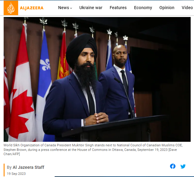 مزید سرچ کے دوران ہمیں الجزیرہ کی ایک رپورٹ ملی۔ جس کے مطابق ہاؤس آف کامنز میں ایک پریس کانفرنس سے خطاب کرتے ہوئے سکھ اور مسلم رہنماؤں نے مبینہ طور پر حکومت سے کینیڈا میں ان کے خلاف ممکنہ خطرات کو روکنے کے لئے چند مطالبات کئے۔ رپورٹ کے مطابق کینیڈا کی رائل سکھ آرگنائزیشن اور نیشنل کونسل آف کینیڈین مسلمز (این سی سی ایم) نے ہردیپ سنگھ نجر کے لئے انصاف کا مطالبہ کیا۔