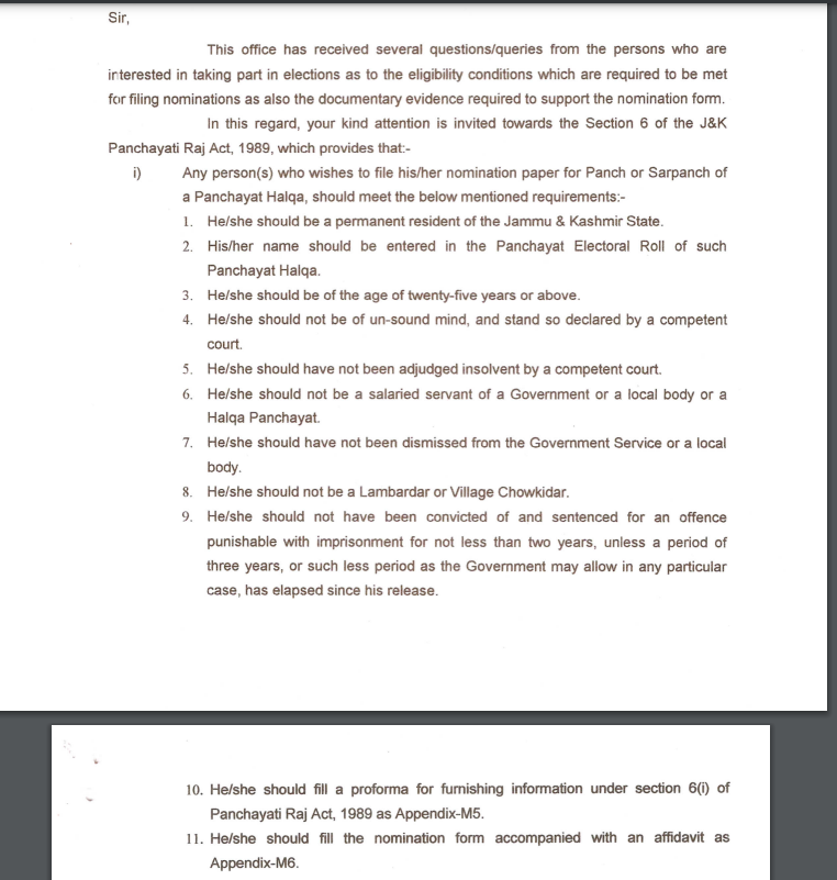 نیوز18 ہندی نے بھی اس حوالے سے ایک رپورٹ شائع کی ہے۔ جس میں بتایا گیا ہے کہ حکومت نے جموں و کشمیر میں دیگر لوازمات کے ساتھ ساتھ سرپنچ کے لیے تعلیمی قابلیت کو کم سے کم بارھیوں پاس قرار دیا گیا ہے۔