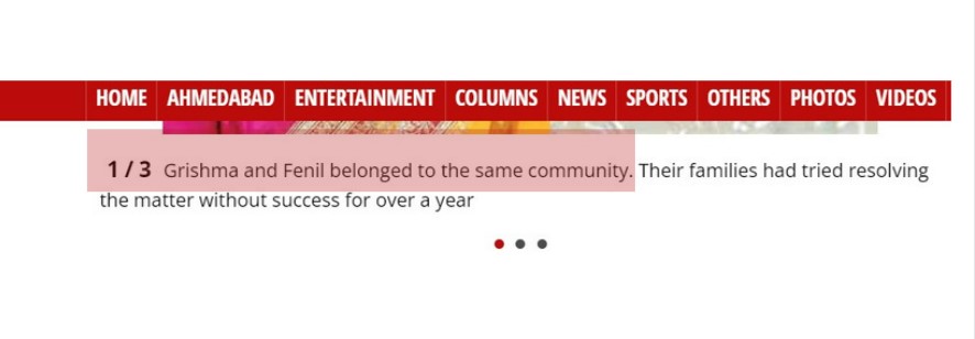 پھر ہمیں کیورڈ سرچ کے دوران احمد آباد میرر پر شائع 14 فروری 2022 کی ایک رپورٹ ملی۔ جس میں واضح کیا گیا ہے کہ قاتل اور مقتول دونوں ہی کا تعلق ایک ہی مذہب سے ہے۔ اب یہاں واضح ہوا کہ جس لڑکی کا قتل ہوا ہے وہ مسلمان نہیں ہے۔