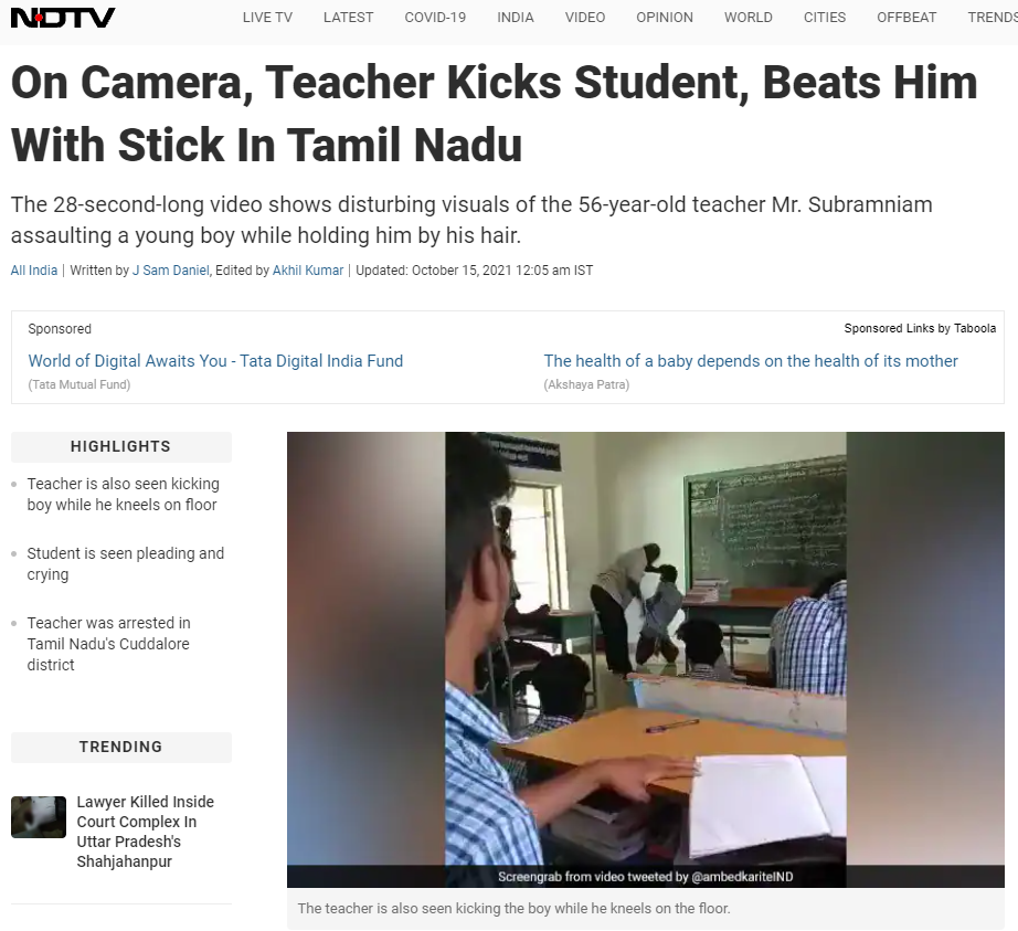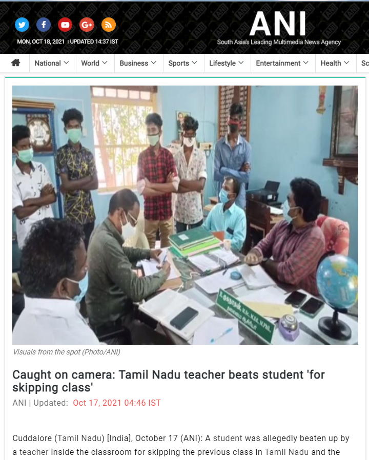 پھر ہم نے کچھ کیورڈ سرچ کیا۔ اس دوران ہمیں بی بی سی تمل اور اے این آئی اور دی ہندو ویب سائٹ پر مذکورہ دعوے سے متعلق خبریں ملیں۔ جس کے مطابق تمل ناڈو کے ٹیچر نے کلاس نا کرنے پر طالب علم کی پٹائی کی تھی۔ پٹائی کا ویڈیو کیمرے میں قید ہو گیا۔