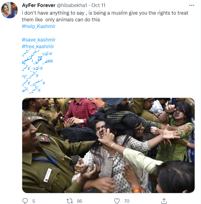 گزشہ کئی دنوں سے ٹویٹر پر کشمیری مسلم کی حمایت میں خوب ٹویٹ کئے جا رہے ہیں اور کشمیری مسلم کا بتاکر متعدد تصاویر اور ویڈیو شیئر کئے جا رہے ہیں۔ جسے دیکھنے کے بعد عام انسان کا دل و دماغ حیران ہے کہ کشمیر میں مسلمانوں کے ساتھ زیادتی ہو رہی ہے اور مسلم ممالک خاموش تماشائی بنی ہیں۔ لیکن ان پوسٹ کی حقائق تلاش کرنے پر بالکل مختلف نتائج سامنے آرہے ہیں۔ جسے آپ درج ذیل کے تفصیلی پڑتال میں پڑھیں گے۔