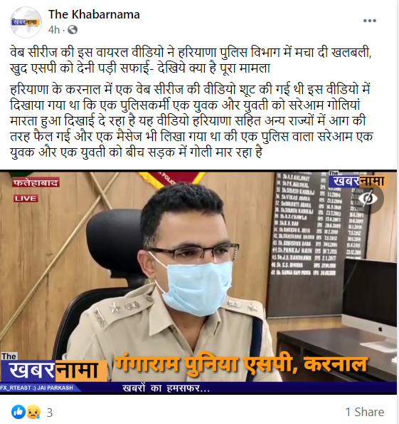 سرچ کے دوران ہمیں فیس بک پیج پر کرنال پولس کا بیان بھی ملا۔ جس میں انہوں نے بھی یہی بات کہی ہے کہ وائرل ویڈیو ایک ویب سیریز کا ہے۔