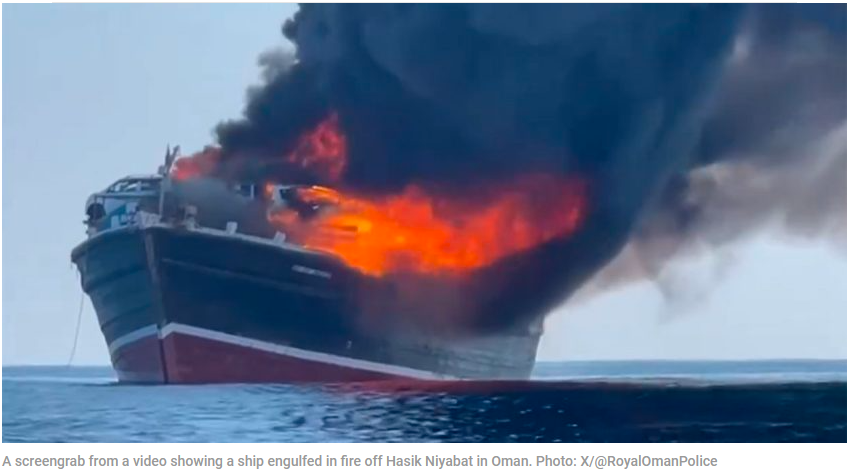 وائرل ویڈیو صومالی تاجروں کا سامان لے جانے والی بحری جہاز میں لگی آگ کی ہے۔