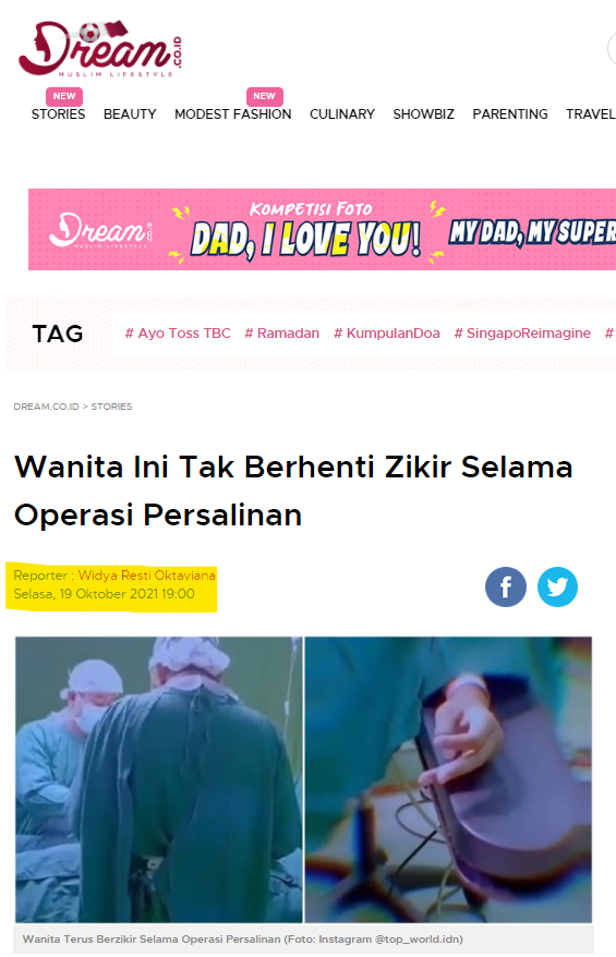 اس کے علاوہ ہم نے ین ڈیکس سرچ کیا۔ جہاں ہمیں ڈریم ڈاٹ کو ڈاٹ آئی ڈی نام کی انڈونیشین ویب سائٹ پر وائرل ویڈیو سے متعلق 19 اکتوبر 2021کو انڈونیشین زبان میں شائع شدہ ایک رپورٹ ملی۔ جس کا ترجمہ کرنے پر پتا چلا کہ ایک خاتون بچے کو جنم دیتے وقت آپریشن تھیئٹر میں دوران سیزرین انگلی پر تسبیح پڑھ رہی ہے۔ لیکن اس رپورٹ میں بھی ویڈیو کہاں کی ہے یہ ذکر نہیں کیا گیا ہے۔ البتہ یہ ضرور لکھا کہ ویڈیو میں ایک خاتون سیزرین آپریشن کے دوران ذکرِ الٰہی کر رہی ہے۔