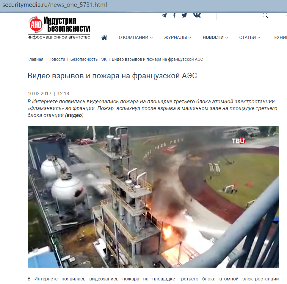 اس دوران ہم نے کچھ کیورڈ سرچ کیا۔ جہاں ہمیں وائرل ویڈیو سے ملتی جلتی تصویروں کے ساتھ دس فروری 2017 کی سیکورٹی میڈیا ڈاٹ آر یو اور کورر ڈاٹ آر ایس نامی ویب سایٹ پر غیرملکی زبان میں شائع شدہ خبریں ملیں۔ رپورٹس کو جب ہم نے گوگل ٹرانسلیٹ کیا تو پتا چلا کہ “سیکورٹی میڈیا ڈاٹ آر یو ایس کی رپورٹ کے مطابق فرانس کے نیوکلئیر پاور پلانٹ کے تیسرے یونٹ کی سائٹ پر شارٹ سرکٹ ہوا تھا۔ جس کے بعد یہ ویڈیو انٹرنیٹ پر بھی شیئر کیا گیا تھا“۔ کورر ڈاٹ آر ایس نے بھی ویڈیو کو فرانس کے پاور پلانٹ میں ہوئی آتشزدگی کا بتایا ہے۔