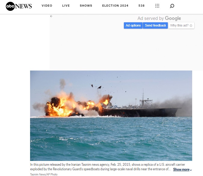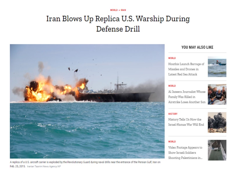 “The ‘maquette of an American aircraft carrier’ was built to scale and targeted with cruise missiles and ballistic missiles, according to Fars News, which is linked to the Revolutionary Guard,” read an Arab News report, dated February 26, 2015.