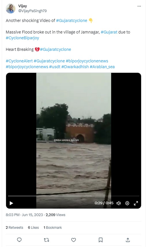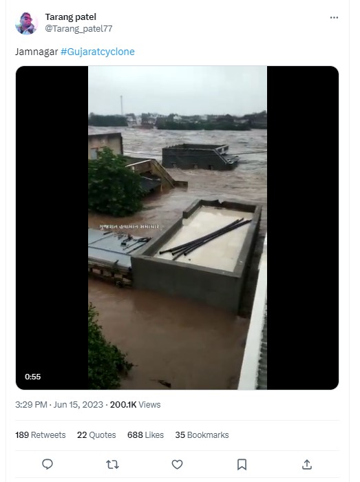 Multiple Twitter users shared the video asserting that it showed the impact of cyclone Biparjoy in Gujarat.