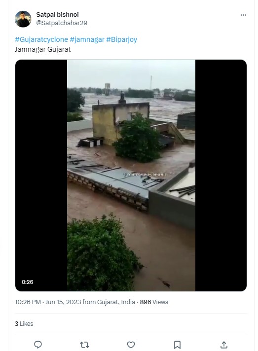 A video of showing massive inundation, with multiple buildings partially submerged in muddy waters, has gone viral on social media platforms, with users linking it to Cyclone Biparjoy that made landfall on Gujarat coast yesterday.