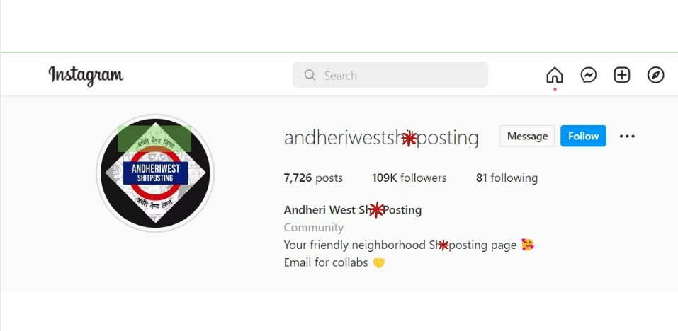 On scanning the account, we found that most of the content was comic or satirical in nature. It’s bio read, “Your friendly neighborhood Sh*tposting page.” We also inspected the display image of the account and found the phrase “Andheri West Memes” written on it in Hindi.
