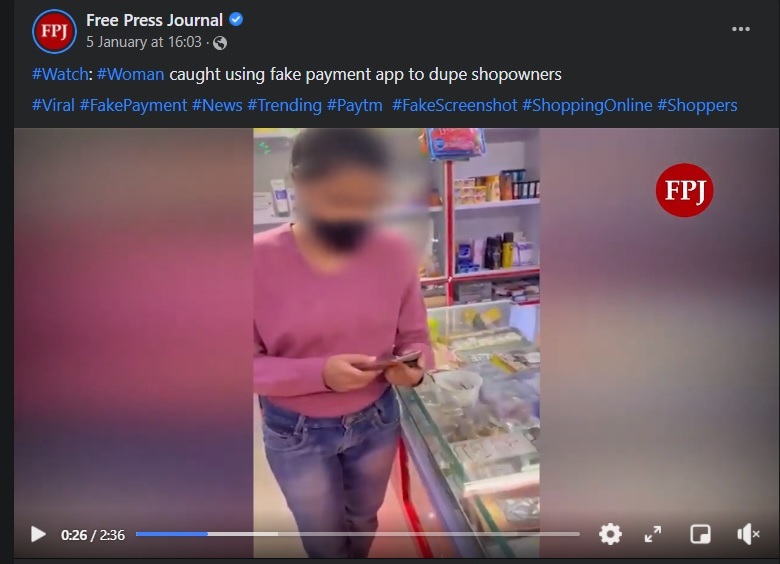 In yet another case of a scripted video being shared as a real life incident, a video showing a young woman attempting to con a shopkeeper by paying for her purchase using a spoof Paytm app is being widely shared on Facebook, Twitter and WhatsApp. Newschecker found that the video was dramatised and was meant for educational purposes.