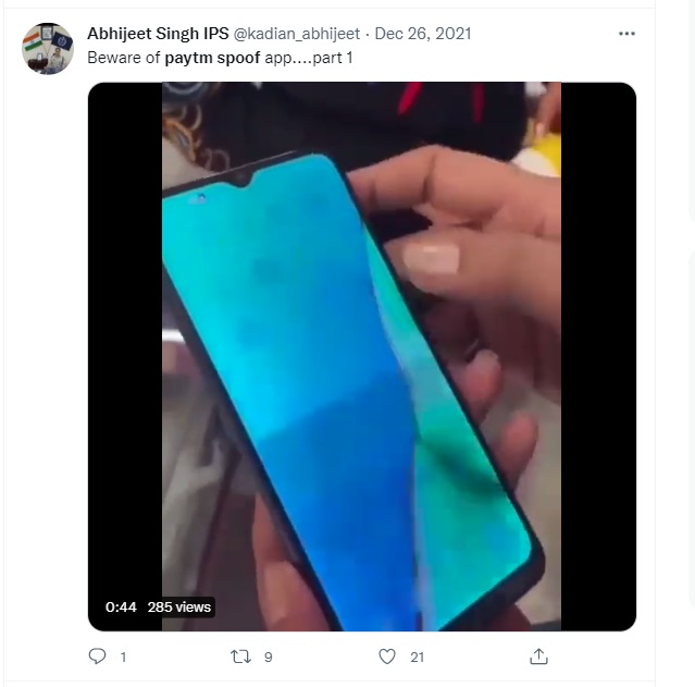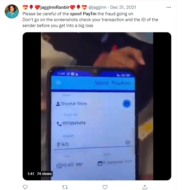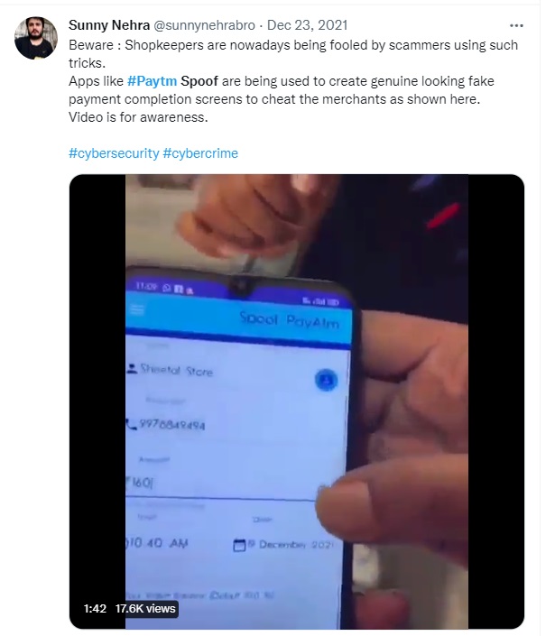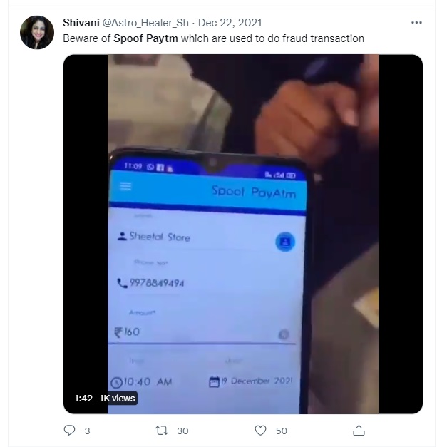 Speaking to Newschecker, Soni, the owner of the page said, “The video is dramatised and was meant strictly for educational purposes only. I heard of such instances where a fake Paytm spoof app was being used to generate fabricated payment notifications to cheat shopkeepers. No one would have cared for my message had I made a regular informative video, so I decided to dramatise such an incident.’ When asked if he had personally witnessed any such incident where a Paytm spoof App was used, he said that he had not.