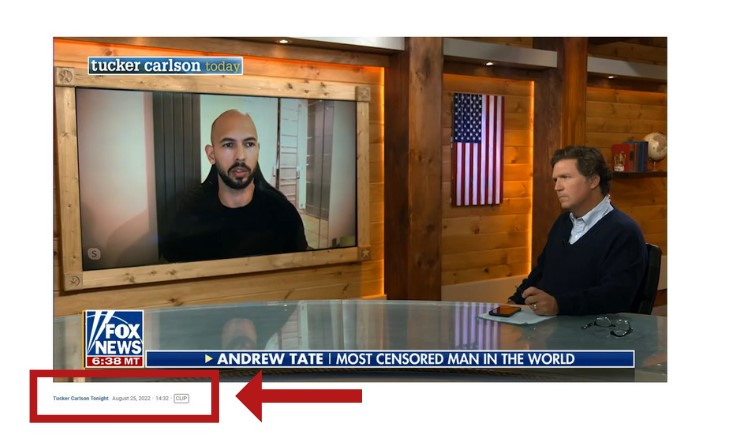 On analysing the viral clip, we spotted Fox News’ logo on the bottom left corner of the screen and ‘Tucker Carlson today’ on the top left.