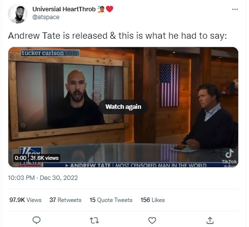 The footage from the interview was uploaded on the official Facebook page of Tucker Carlson Tonight on August 26, 2022, with a caption, “Andrew Tate built a massive following on social media. Then, suddenly, he was removed from all platforms. Lots of allegations are being made about him, so we wanted to talk to him directly about what happened. Here it is. Also, you can watch the full interview right now on FOX Nation.”