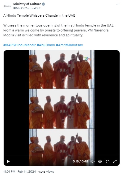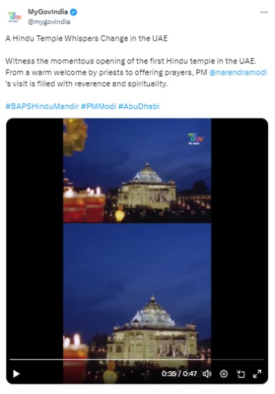 Major media outlets such as Times of India, Hindustan Times, Indian Express, among others, along with political leaders like Rajasthan’s minister of youth affairs and sports, Rajyavardhan Singh Rathore, too, shared videos and articles, stating that the BAPS Swaminarayan temple is the UAE’s first Hindu temple.