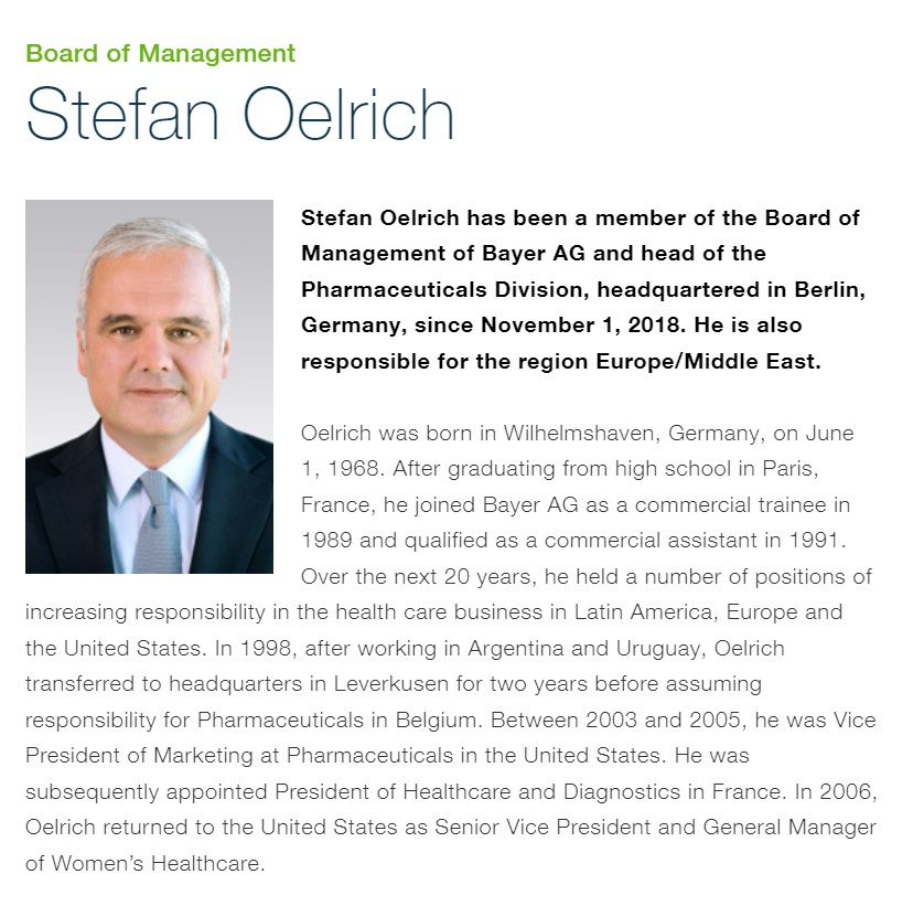 Newschecker looked up the official website of Bayer to ascertain whether the man seen in the video is Stefan Oelrich, and by comparing Oelrich ‘s photograph in the biographies section in the website with the keyframes of the clip, we could conclude that they are indeed the same person.