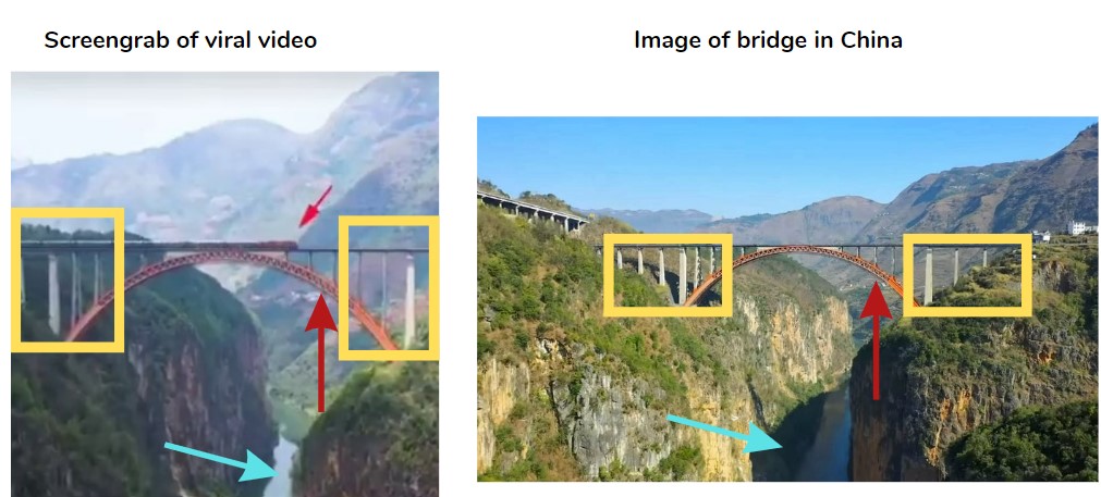 Geo-location tool confirmed the location of the bridge seen in the viral clip to be in China. Video traced back to at least June 2022.
