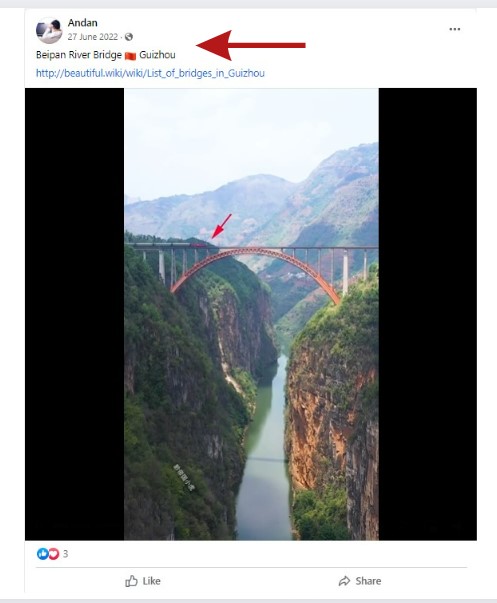 Furthermore, a Facebook post by user Andan, dated June 27, 2022, carried the viral video with the caption, “Beipan River Bridge 🇨🇳 Guizhou…”