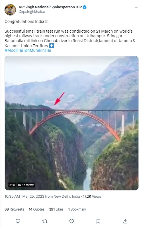 Hence, we could conclude that the viral video does not show “successful small train test run on Chenab bridge.”
