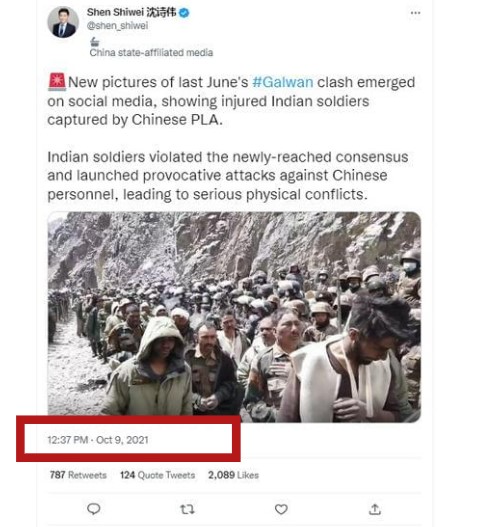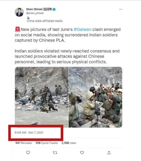 Shen Shiwei, a journalist associated with China’s state-affiliated media, also tweeted the same images on November 7, 2021, claiming to show the clashes that took place in Galwan in June 2020.