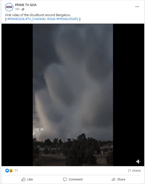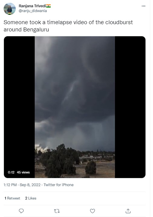 As flash floods and incessant downpour wreak havoc in Bengaluru, social media platforms are inundated with visuals of waterlogged streets, partially-submerged vehicles, and evacuations of residents using tractors and boats. Amid this, a 13-second-long-video showing a massive blanket of clouds billowing and seemingly descending on the streets is going viral on social media platforms. It is being claimed with the video that this is the time-lapse footage of a cloudburst in Bengaluru. Newschecker found the claim to be untrue.