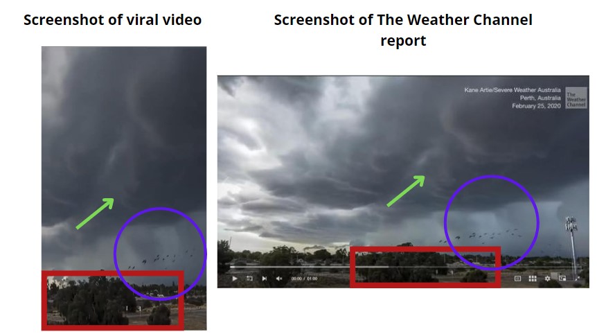 On comparing the keyframes of the viral video with the one featured in ‘The Weather Channel’ report, we could conclude that both the clips were from the same incident.