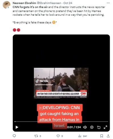 A further search led us to a New York Post article, dated October 13, 2023, stating that CNN had debunked a viral video circulating on social media, claiming correspondent Clarissa Ward’s reporting in Israel was staged.