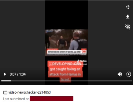 Newschecker first ran a keyword search for “CNN report Hamas rocket attack”, which led us to the original version of the video on CNN’s website, stating, “CNN team ducks from ‘massive barrage of rockets’ near Israel-Gaza border”. In the report, CNN’s chief international correspondent, Clarissa Ward, describes the attack as it happens. The voiceover from the viral video, directing the crew, is not heard, indicating that it had been added.