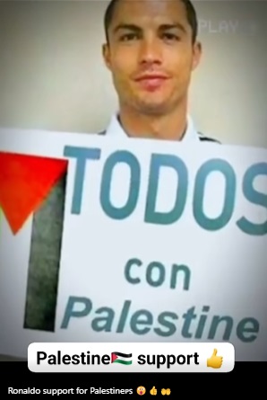 Portuguese footballer Cristiano Ronaldo has shown support for Palestine in the ongoing Israel-Hamas conflict.