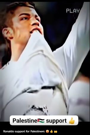 A video, purportedly showing Portuguese footballer Cristiano Ronaldo extending his support to Palestine, has gone viral on social media amid the ongoing Israel-Palestine conflict.