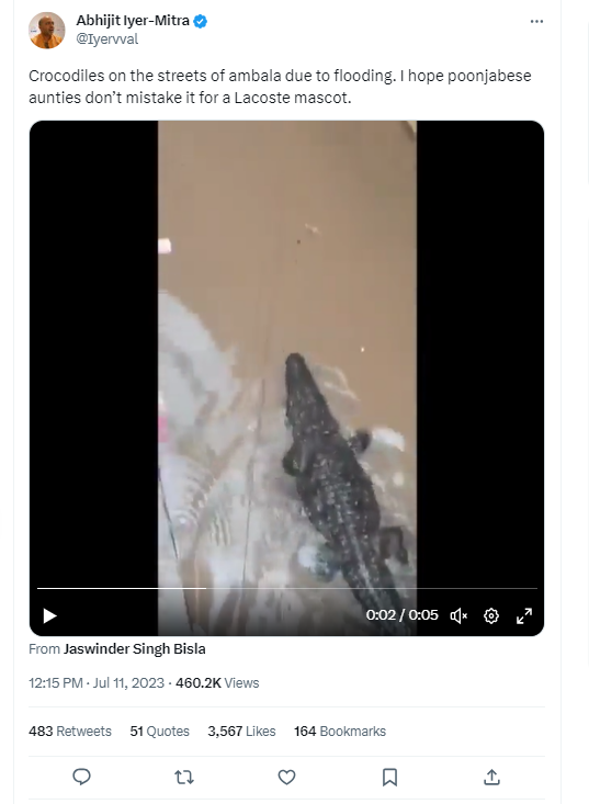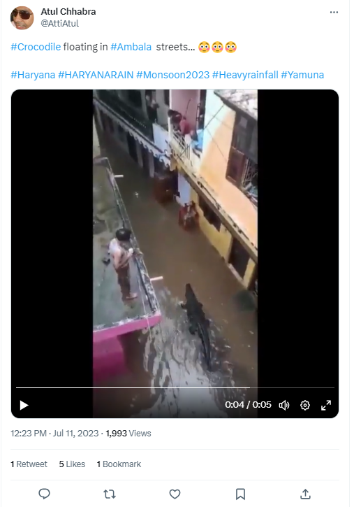 As incessant rainfall caused waterlogging in Ambala, a video of a crocodile wading through a flooded locality has gone viral on social media platforms with users claiming it to be the Haryana city. Newschecker found the claim to be untrue. The viral video actually dates back to August 2022, and shows an incident from Madhya Pradesh’s Shivpuri district.