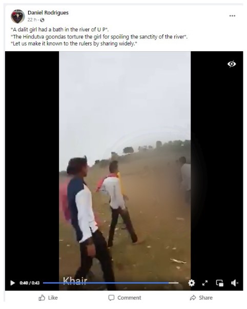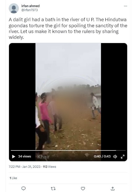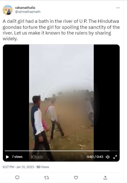 Several Twitter users shared the video with the caption, “A dalit girl had a bath in the river of U P. The Hindutwa goondas torture the girl for spoiling the sanctity of the river. Let us make it known to the rulers by sharing widely. (sic)”