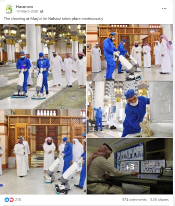 Newschecker also got in contact with investigative reporter Saja Mortada, manager of Arab Fact-Checkers Network (AFCN), who directed us to Dina Ibrahim from Egypt-based Akhbharmeter Observatory’s fact-checking team, who reiterated that the team found the claim to be false. “The city of Medina does, in fact, carry out regular cleaning operations inside and around the Prophet’s Mosque. The Medina Municipality also publishes weekly statistics on the number of field cleaning rounds in the city in general, as well as the number of sites that have been disinfected and sanitised,” said Ibrahim, directing us to several online posts, seen here, here, here and here, confirming the regular cleaning operations. We, however, could not independently verify if the viral video is of a cleaning operation after Irani’s visit.