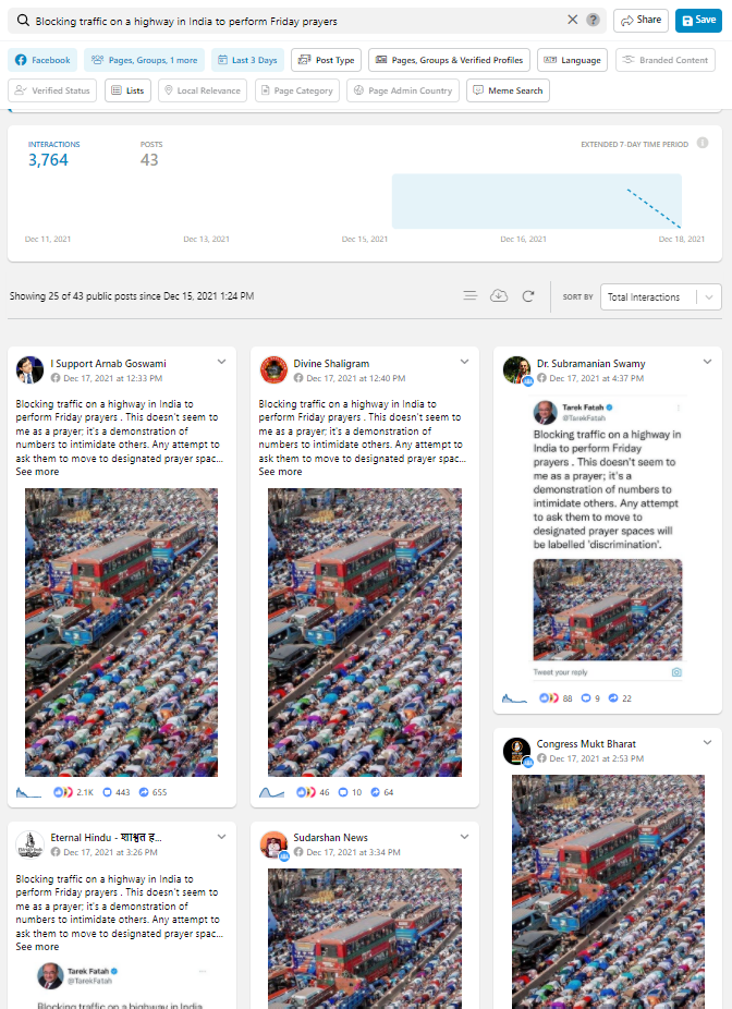 Amidst communal tension in Gurugram between far-right Hindu groups and Muslims over Namaz in public spaces, a photo showing a large number of Muslims offering Namaz on a road blocking traffic was shared online by Tarek Fatah, a Pakistani-Canadian commentator claiming that a highway in India was blocked to perform Friday prayers. Newschecker found the image to be from January 2020 in Bangladesh.